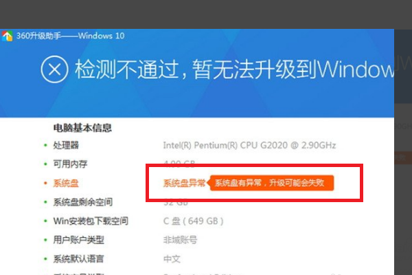 5、然后,测试完成后,系统会提示系统盘有异常,如下图所示。