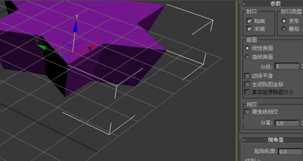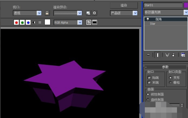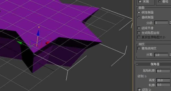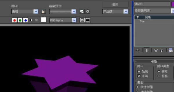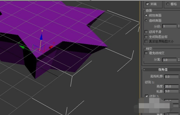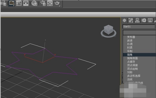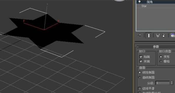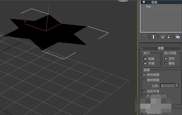 3、然后,在透视图中,可以看到星形图案已更改,但没有倒角。这需要修改切角面板上的参数,如下图所示。