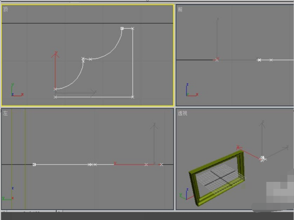 1、打开3dmax,在前视图绘制一个矩形。