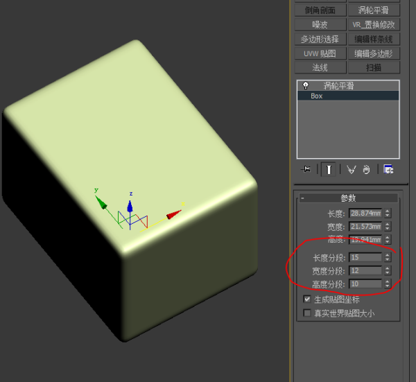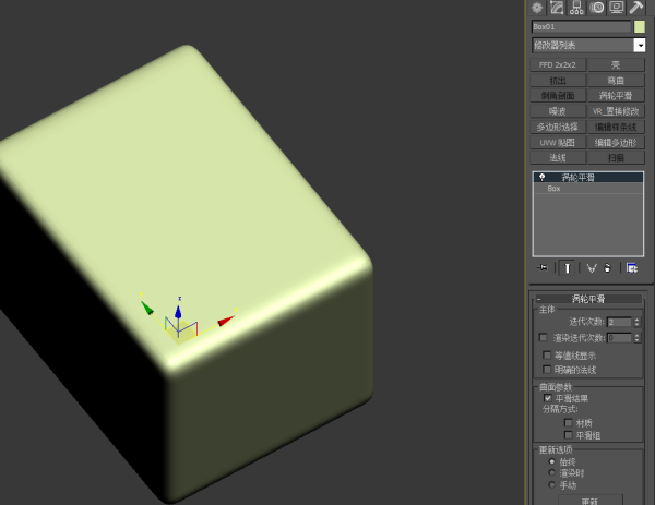 添加涡轮平滑修改器,其下的迭代次数值越大,越光滑。