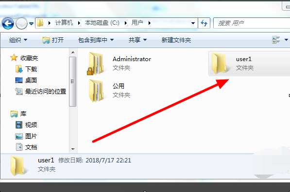 3、打开C:\Users,新建一个文件夹,名称与用户名称一样,即user1;