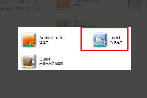 以上操作完成后,关闭所有程序,重启机器,就可以登录到user1了。