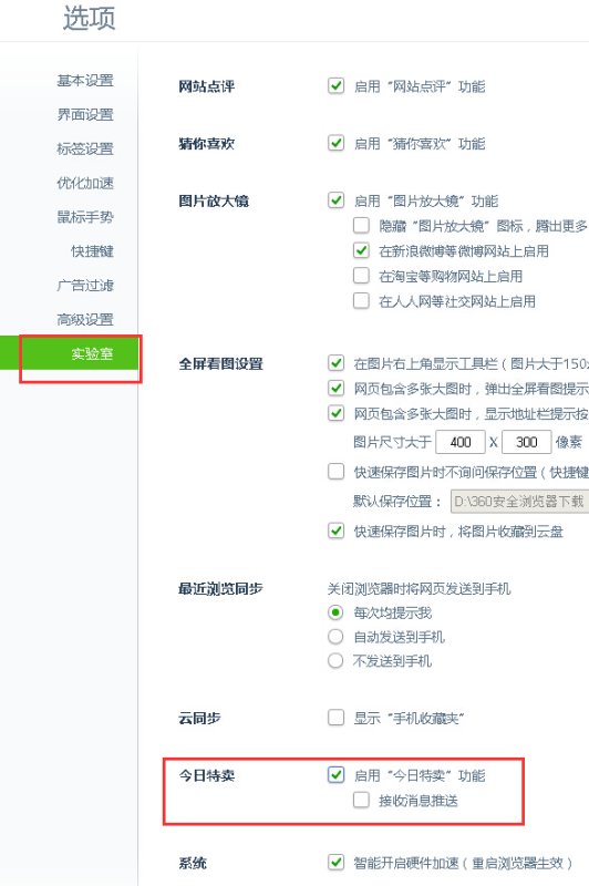 在页面中取消【今日特卖】下的【启用“今日特卖”功能】、【接收消息推送】,把这两个勾去掉;