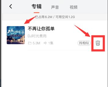 6、这里就能看到已下载的音频,点击右侧的垃圾箱图标,可以删除下载的音频。