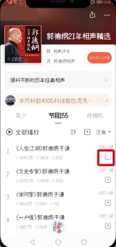 在喜马拉雅FM上,找到喜欢的音频节目,点击下载。