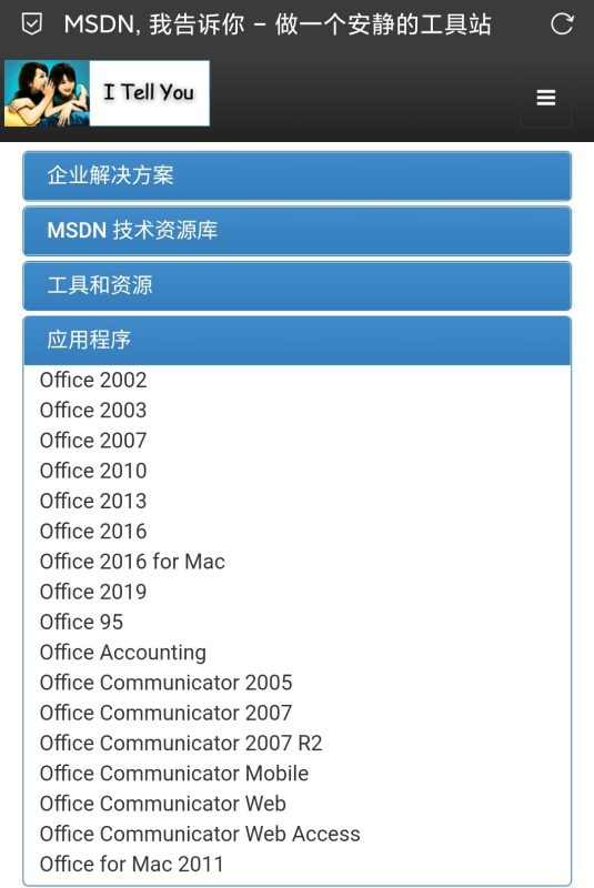 如果只是想要使用2013版,而不是最新的Office版本,你可以去「msdn我告诉你」这个站点下载2013版的镜像安装包:
