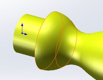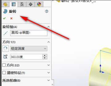 5、退出草图环境,使用“特征”选项中的“旋转凸台/基体”命令,生成手柄模型,如图所示。