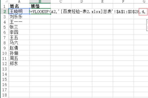 4、输入=vl会自动匹配公式,双击VLOOKUP,如果没有匹配的就手动输入: