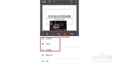 如果添加成功,效果不错时,可以点击界面底部“四方格”选项点击“播放”之后可以选择从“当前页或从首页再或自动播放”