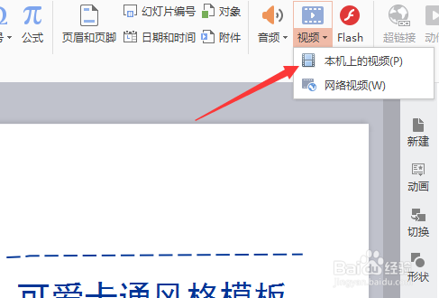 进行点击了视频之后,弹出了下拉菜单选中为 本机上的视频 的选项。