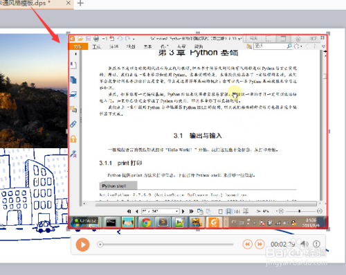 点击添加该视频之后添加PPT文档,可以拉到视频周围方向点对该视频缩小到合适的位置.
