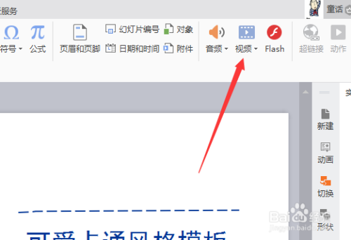 进入到了插入的菜单之后,进行点击列表中的 视频 的选项。