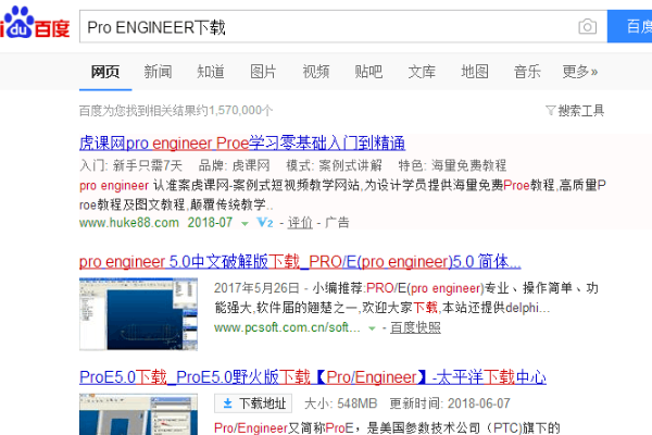1、可以在百度搜索引擎中搜索下载ProENGINEER软件。