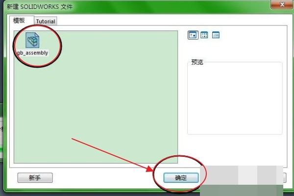 5.在弹出对话框中选择模板标签下的“gb-assembly”选项,点击“ok”进入下一页,如下图所示。