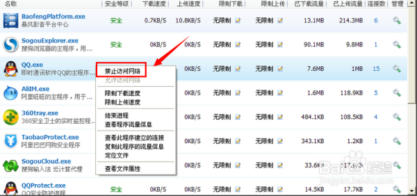 4. 若想禁止那个程序,就右键选择“禁止访问网络”