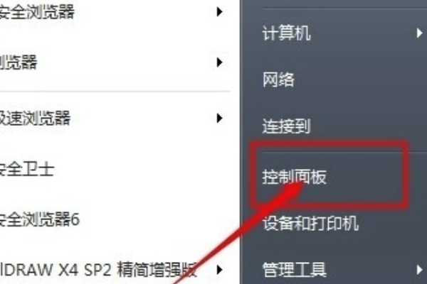 1、电脑左下角的开始,点击控制面板。