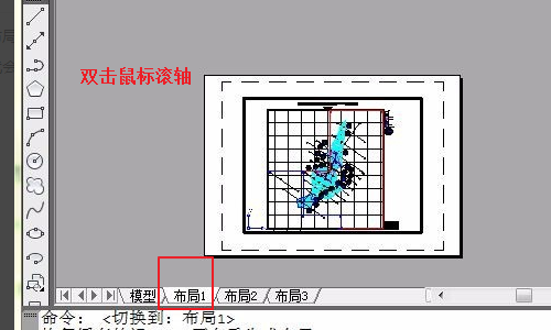 6、同样,如果在布局中无法看到图纸,双击鼠标滚轴,图纸就会出现在窗口中。