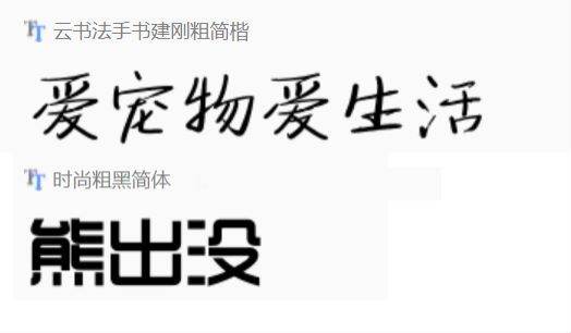 图片上的两种字体分别是——云书法手书建刚粗简楷、时尚粗黑简体。这两种字体商用需要授权。