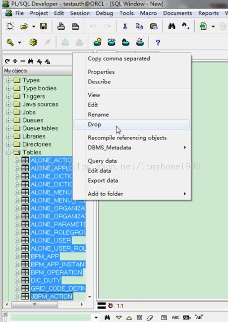 PL/SQL删除某个用户下的所有表