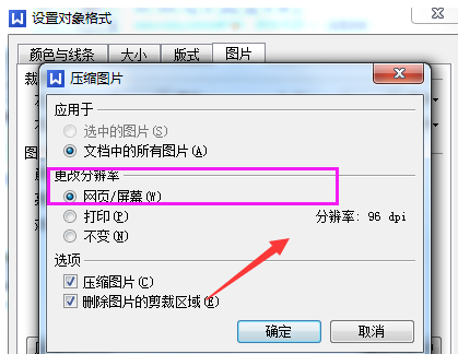 这里如果需要压缩图片,选择更改分辨率为96dpi。