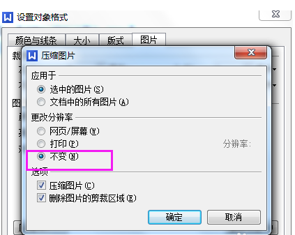 8.如果插入的图片比较大,默认的200dpi其实也是压缩了,如果要保留原图可以选择【不变】。