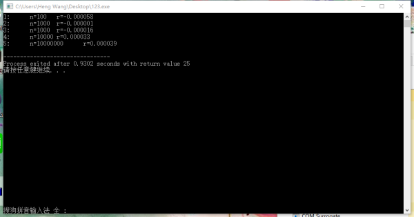 inti,n[5]={100,1000,1000,10000,10000000};//随机投点个数,个数越多结果越精确