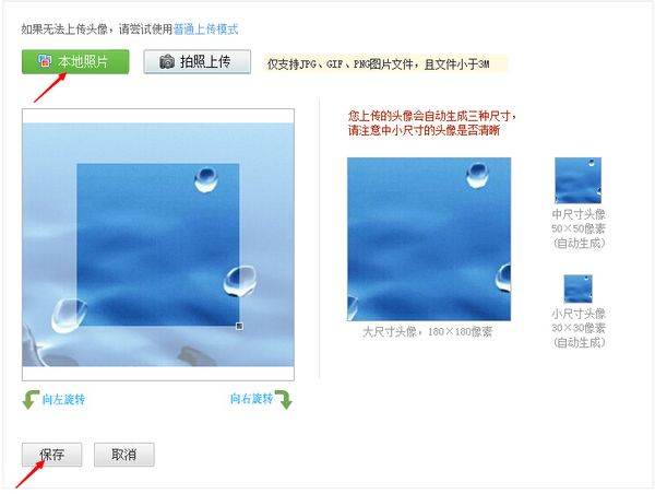 2、点击本地图片选择做为头像的图片,点击保存即可。