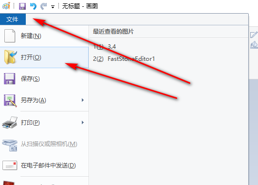 1、首先打开画图工具,然后点击文件,在弹出来的页面表中选择打开文件,如图所示。