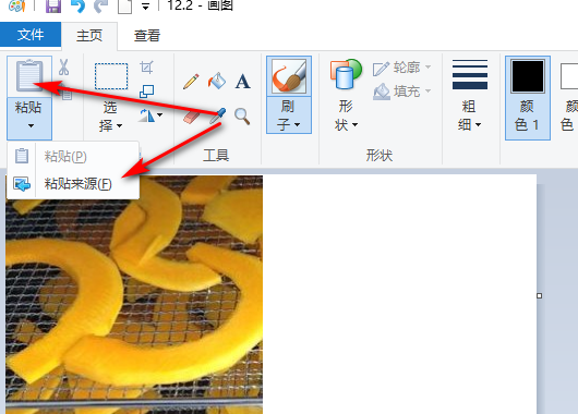 5、出现白色区域后,点击界面的左上方中的粘贴来源。