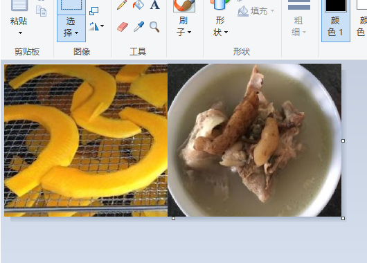 可以用电脑自带的画图工具,把两张照片合成一张。下面介绍具体操作方法: