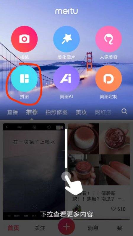 2、 然后在美图秀秀主页,选择“拼图”功能,进入拼图页面。