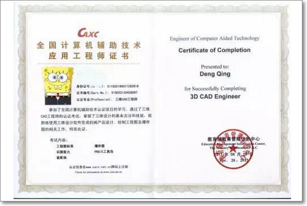 参考资料:百度百科-CAD工程师认证证书