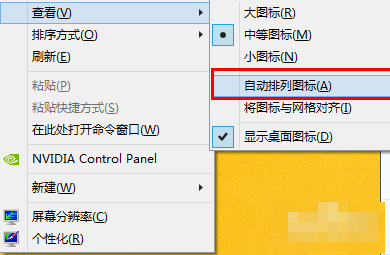1、在桌面空白处,右键—查看,取消“自动排列图标”;