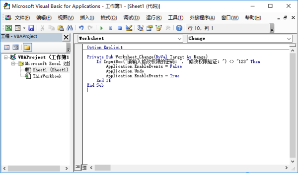If InputBox("请输入修改权限的密码:", "修改权限验证:") <> "123" Then
