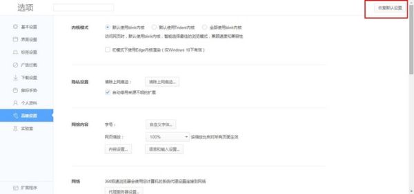 4.或者进入“选项”界面,在左边侧边栏选择“高级设置”,在“高级设置”里面选择“恢复默认设置”。