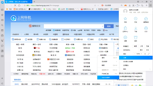 1.点击浏览器的“工具”,在“工具”的下拉菜单栏选择“选项”。