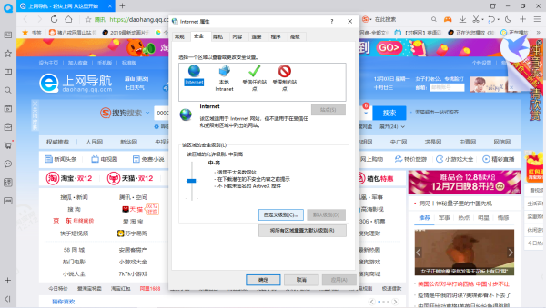 首先打开控制面板,点开系统安全。点击Internet选项。打开Internet的管理项。点击安全。然后将下面的各个选项的安全限制的那个勾去掉。之后退出浏览器再进去应该就没问题了。或者按下图操作。