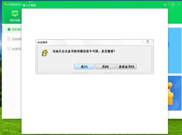 有可能出现安全证书提示,点击是,继续