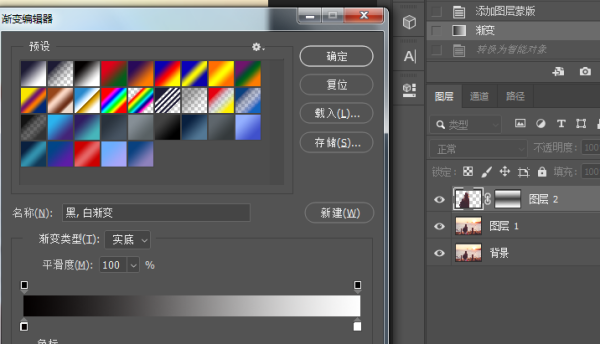 2、添加图层蒙版,选“对称渐变”: