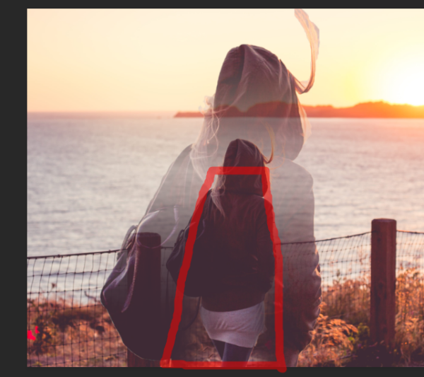 将人物抠出放大,添加图层蒙版,一拉中间部分透明度就出来了,腰以下部分羽化即可