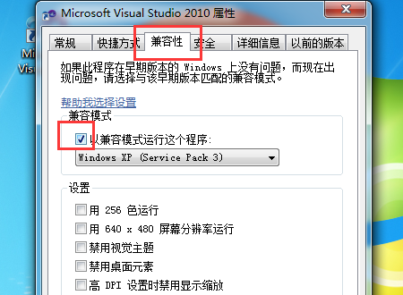 3.然后在界面中,选择“兼容性”中的“在兼容模式下运行此程序”选项。