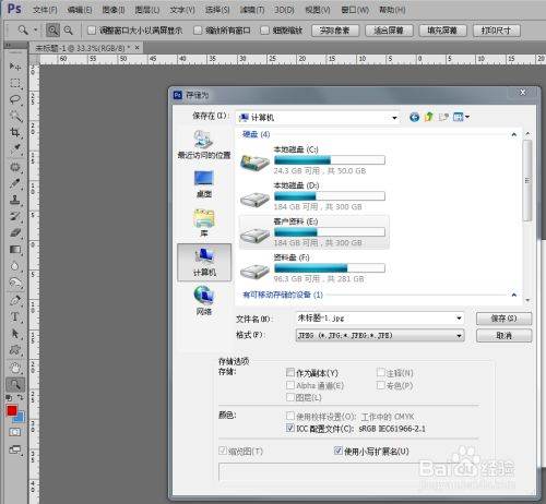 设计好后,将文件保存为psd格式,再将文件保存为jpg格式。保存方法和保存数值设置方法如下。