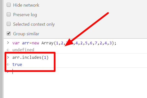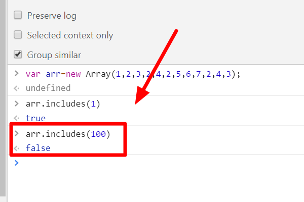 2、使用数组的includes函数,函数的参数为查找的值,如果数组中有被查找的值,则函数输出“true”: