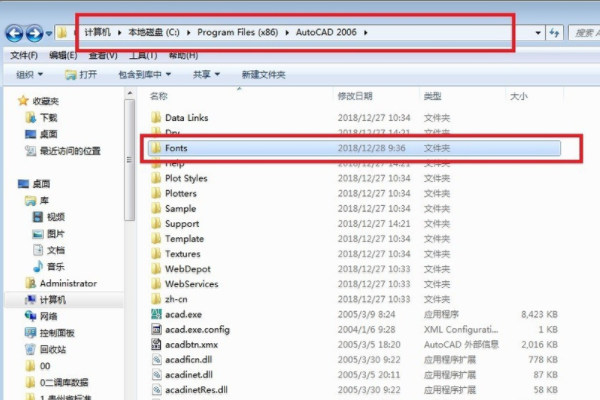 3、网上下载一个CAD字体库大全发那个如电脑文件夹里。