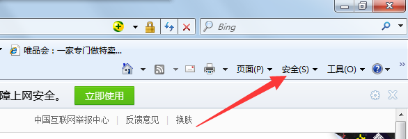 2.点击界面的上方的“安全”选项卡,然后点击“Internet”;