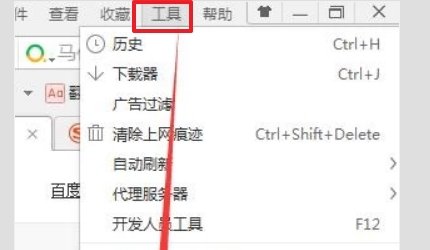 1、点击浏览器工具下拉列表。