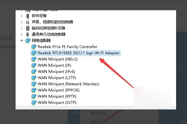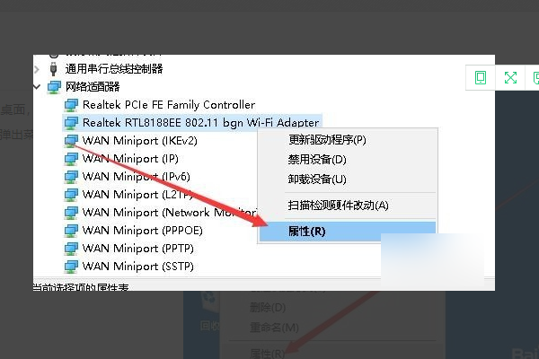 5、右键点击无线网卡驱动程序,在弹出菜单中选择“属性”菜单项。