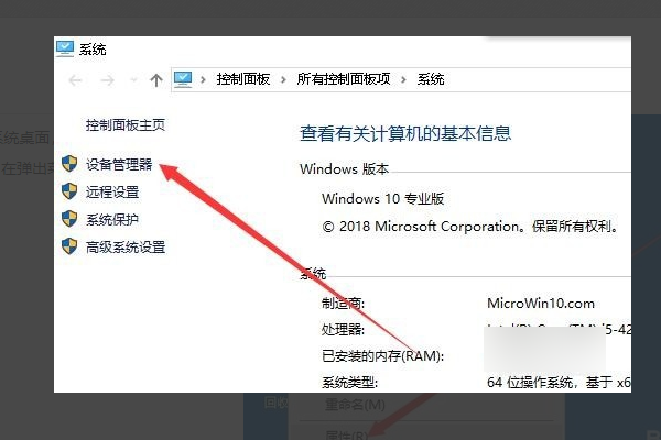 2、接下来在打开的Windows属性窗口中,我们点击左侧边栏的“设备管理器”菜单项。