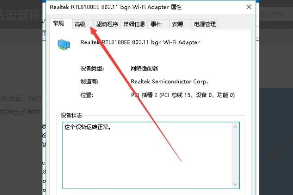 6、这时就会打开网卡属性窗口,在窗口中我们点击上面的“高级”选项卡。