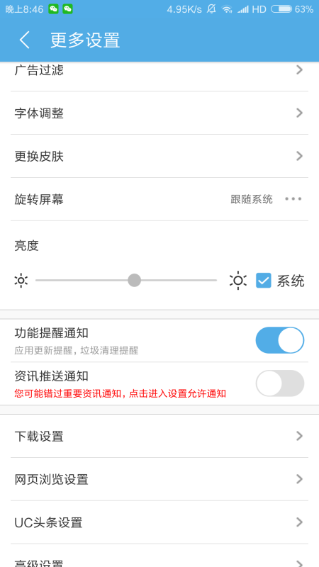 2、点击左下角设置图标,找到下载设置,然后可以看到默认下载目录,你下载的视频文件就在这个目录UCDownloads下。
